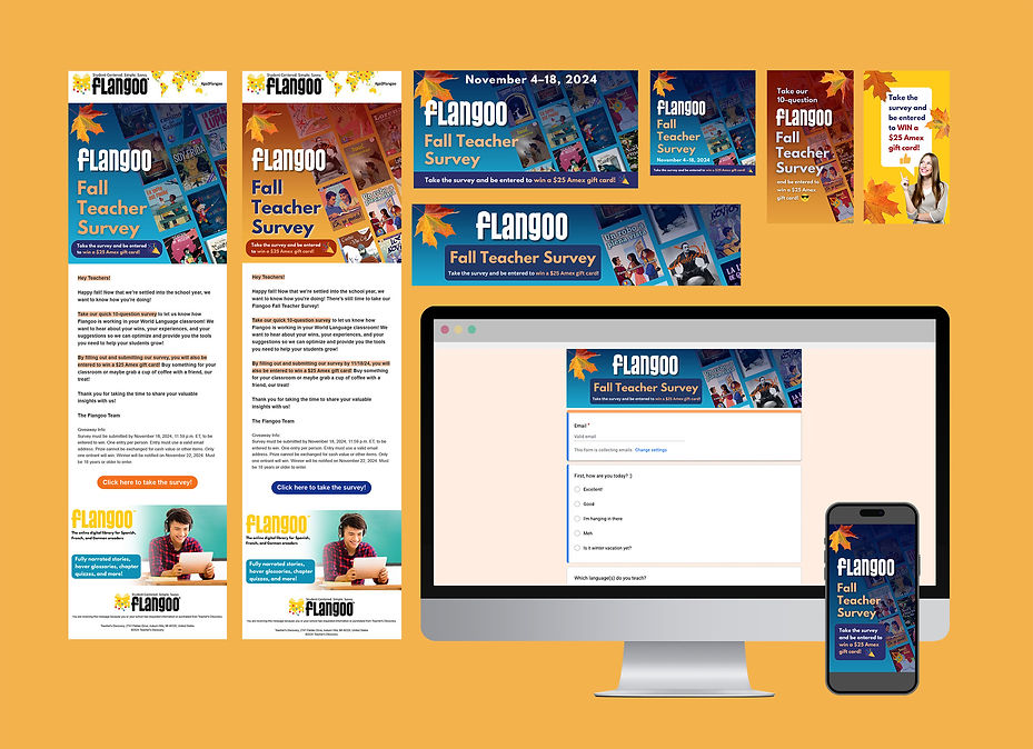 Below are a few of the campaigns I created for Teacher's Discovery to increase our customer reach and engagement. Campaign assets included emails, Google Forms, posts, and stories for Instagram, Facebook, TikTok, YouTube, and Pinterest. The result was an increase in our social media and website traffic, as well as valuable feedback from our customer base, which helped us tailor our offerings.